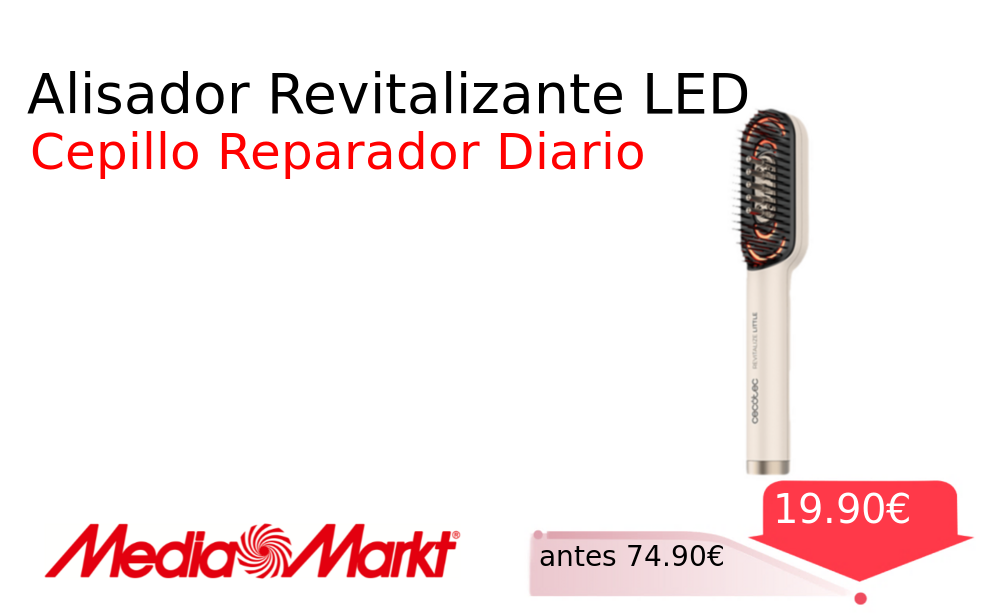 Mitad de precio✂️ Alisador Revitalizante LED❗️🆕 #MediaMarkt 📛Precio Ya 19.90€❗️ (PVP: +74.90€) ✨Cepillo alisador con tecnología reparadora luces LED y función de masaje vibratorio Desenreda y sana tu cabello diariamente para un cuidado capilar completo. cholloya.com/CECOTEC_HAIRCAR