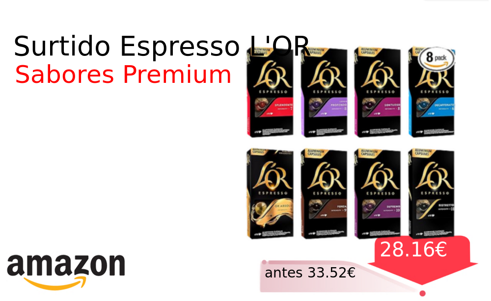 Buen Precio✨ Surtido Espresso L'OR❗️🆕 #Amazon 🇪🇸 📛Precio Ya 28.16€❗️ (PVP: +33.52€) ✨Mezcla exclusiva de ocho aromas intensos para máquinas Nespresso Disfruta del auténtico espresso con cápsulas de calidad superior en cada taza. cholloya.com/LOR_ESPRESSO_SU