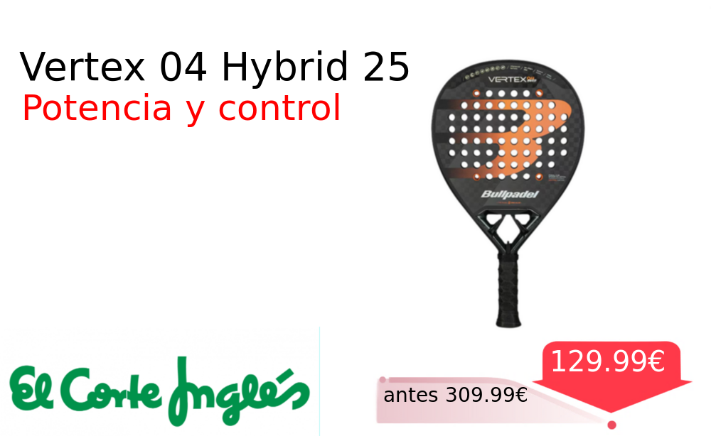 Mitad de precio✂️ Vertex 04 Hybrid 25❗️🆕 #Elcorteingles 📛Precio Ya 129.99€❗️ (PVP: +309.99€) ✨Pala de pádel Vertex 04 Hybrid 25 para hombre diseñada para ofrecer un equilibrio perfecto entre control y potencia en cada golpe Su construcción. cholloya.com/BULLPADEL_VERTE