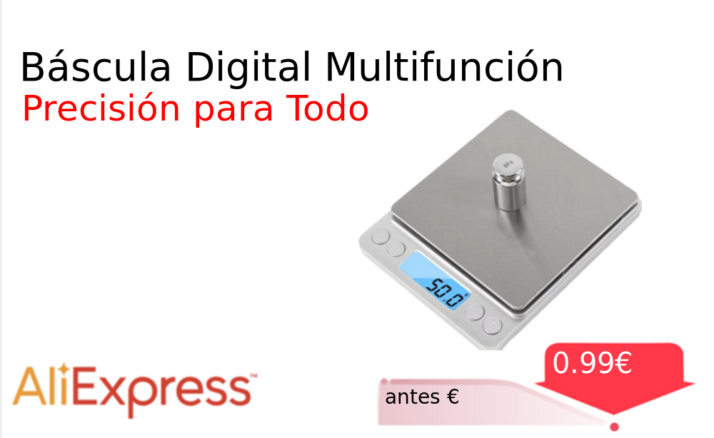 Buen Precio✨ Báscula Digital Multifunción❗️🆕 #AliExpress 📛Precio Ya 0.99€❗️ (PVP: +€) ✨Báscula digital multifunción con pantalla LCD clara Ideal para pesar joyas ingredientes de cocina o calcular el franqueo postal con gran precisión y facilidad. cholloya.com/BAS_MULTIFUNCIO