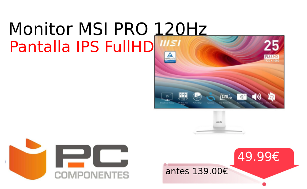 Mitad de precio✂️ Monitor MSI PRO 120Hz❗️🆕 #PcComponentes 📛Precio Ya 49.99€❗️ (PVP: +139.00€) ✨Monitor IPS de 24 5 pulgadas con resolución Full HD y frecuencia de actualización de 120 Hz Ideal para trabajo y entretenimiento ofreciendo colores. cholloya.com/MSI_PRO_MP251W