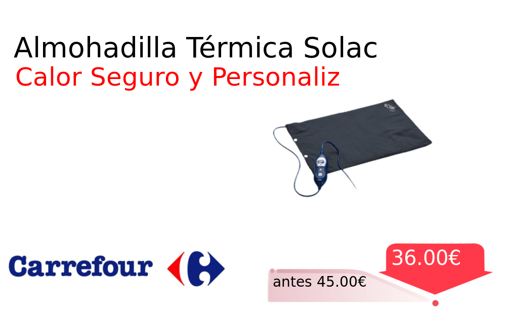 Buen Precio✨ Almohadilla Térmica Solac❗️🆕 #Carrefour 📛Precio Ya 36.00€❗️ (PVP: +45.00€) ✨Almohadilla eléctrica con control de temperatura electrónico y cuatro potencias Incluye funda lavable cable separable y función de autoapagado para mayor seguridad y comodidad. cholloya.com/SOLAC_CT8639