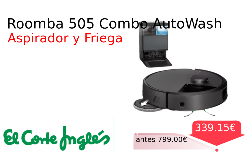 Mitad de precio✂️ Roomba 505 Combo AutoWash❗️🆕 #Elcorteingles 📛Precio Ya 339.15€❗️ (PVP: +799.00€) ✨Robot aspirador y friegasuelos con base de autolavado Aspira y friega en una sola pasada mapeando tu hogar con tecnología LiDAR para una limpieza. cholloya.com/IROBOT_ROOMBA_5