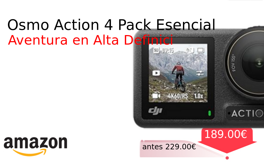 Buen Precio✨ Osmo Action 4 Pack Esencial❗️🆕 #Amazon 🇪🇸 📛Precio Ya 189.00€❗️ (PVP: +229.00€) ✨Cámara de acción sumergible con sensor grande para vídeo 4K a 120 fps Excelente rendimiento con poca luz y color de 10 bits Batería. cholloya.com/OSMO_ACTION_4