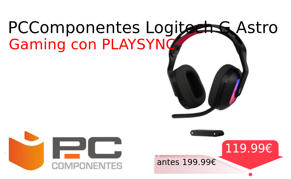 40% 📉 Vaya descuentazo‼‼ PCComponentes Logitech G Astro❗️🆕 #PcComponentes 📛Precio Ya 119.99€❗️ (PVP: +199.99€) ✨Auriculares gaming inalámbricos y alámbricos con PLAYSYNC y Bluetooth Sonido envolvente micrófono claro y personalización RGB para una experiencia de juego superior. cholloya.com/logitech_astro_a20