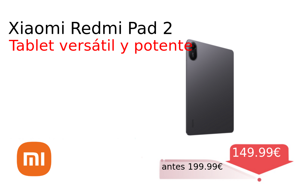 Buen Precio✨ Xiaomi Redmi Pad 2❗️🆕 #Mi 📛Precio Ya 149.99€❗️ (PVP: +199.99€) ✨Esta tablet combina un diseño elegante con un rendimiento fluido para el entretenimiento y la productividad diaria Pantalla nítida y gran autonomía. Si usas EUR, tienes 10€ de descuento. Selecciona el cupón en app o web para aplicar 10€ de descuento. cholloya.com/xiaomi_redmi_pad