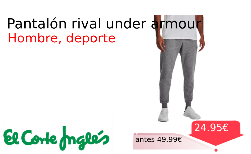Mitad de precio✂️ Pantalón rival under armour❗️🆕 #Elcorteingles 📛Precio Ya 24.95€❗️ (PVP: +49.99€) ✨Pantalón deportivo para hombre de Under Armour Diseñado para ofrecer comodidad y libertad de movimiento en cualquier actividad física con diseno innovador y funcional. cholloya.com/pantalon_rival_ua