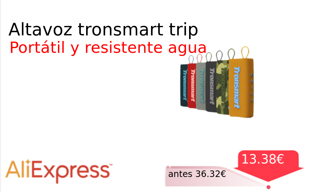 Mitad de precio✂️ Altavoz tronsmart trip❗️🆕 #AliExpress 📛Precio Ya 13.38€❗️ (PVP: +36.32€) ✨Altavoz Bluetooth portátil con sonido estéreo real gracias a su doble controlador Resistente al agua IPX7 ideal para llevar a la playa piscina. cholloya.com/tronsmart_trip