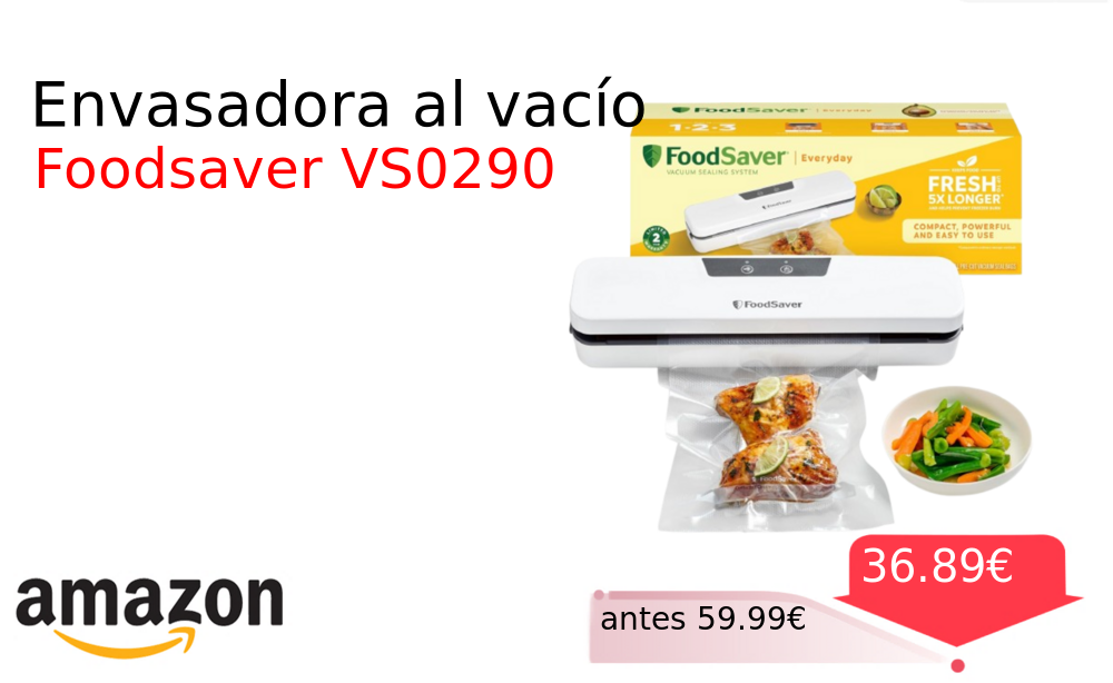 ¡Toma descuento!🤯 Envasadora al vacío❗️🆕 #Amazon 🇪🇸 📛Precio Ya 36.89€❗️ (PVP: +59.99€) ✨Envasa y sella los alimentos con solo pulsar un botón, y cabe fácilmente en cocinas de cualquier tamaño, ya sea en la encimera, en un armario o en un cajón cholloya.com/FOODSAVERVS0290