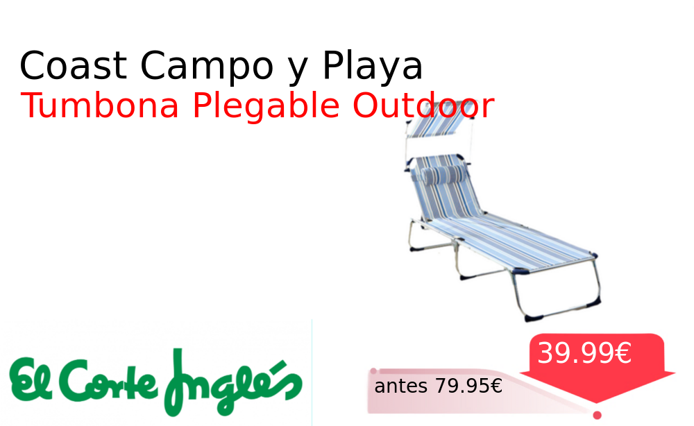 40% 📉 Vaya descuentazo‼‼ Coast Campo y Playa❗️🆕 #Elcorteingles 📛Precio Ya 39.99€❗️ (PVP: +79.95€) ✨Tumbona plegable ideal para disfrutar del aire libre Ligera y cómoda perfecta para playa camping o jardín Fácil transporte y almacenamiento. cholloya.com/COAST_CAMPO_PLA