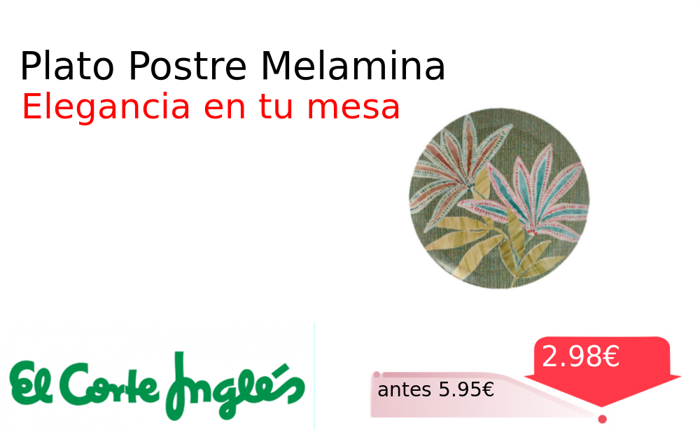 40% 📉 Vaya descuentazo‼‼ Plato Postre Melamina❗️🆕 #Elcorteingles 📛Precio Ya 2.98€❗️ (PVP: +5.95€) ✨Plato de melamina ideal para postres diseño elegante y duradero Perfecto para tu mesa diaria o ocasiones especiales fácil de limpiar. cholloya.com/CORTEINGLES_PLA