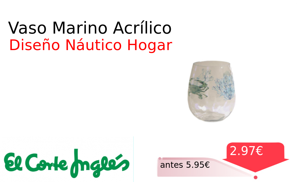 Mitad de precio✂️ Vaso Marino Acrílico❗️🆕 #Elcorteingles 📛Precio Ya 2.97€❗️ (PVP: +5.95€) ✨Vaso acrílico transparente con diseño marino Ideal para disfrutar tus bebidas favoritas en casa o exterior Material resistente y fácil de limpiar. cholloya.com/MARINE_VASO