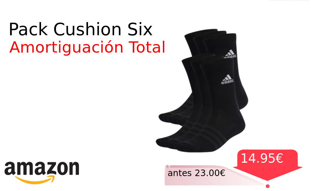 Más de un 30% 🚀 Pack Cushion Six❗️🆕 #Amazon 🇪🇸 📛Precio Ya 14.95€❗️ (PVP: +23.00€) ✨Calcetines técnicos adidas con máxima amortiguación Pack de seis unidades para uso diario y deportivo Material transpirable y cómodo con diseno innovador y funcional. cholloya.com/ADIDAS_CUSH_CRE