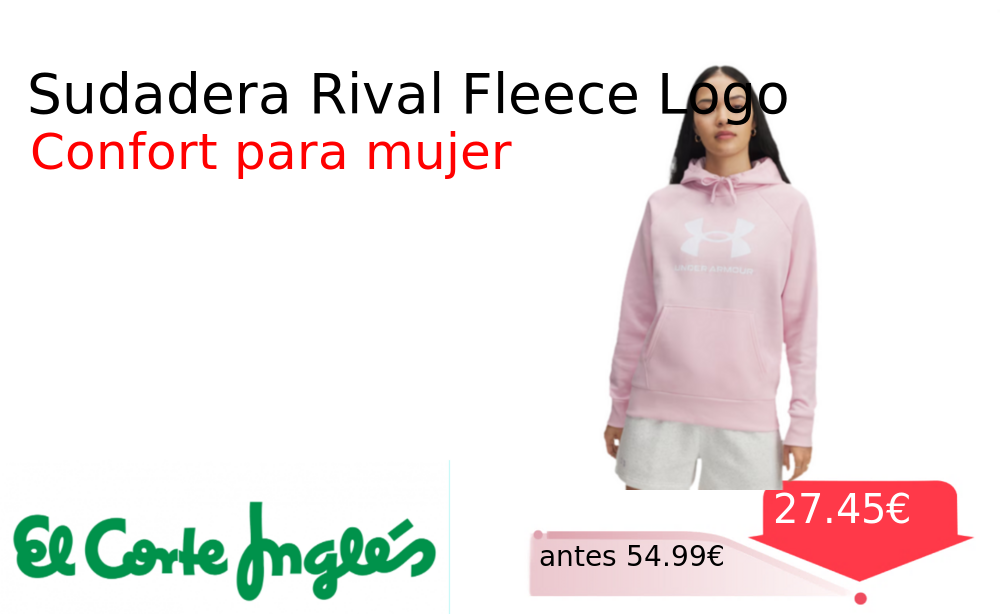 Mitad de precio✂️ Sudadera Rival Fleece Logo❗️🆕 #Elcorteingles 📛Precio Ya 27.45€❗️ (PVP: +54.99€) ✨Sudadera de mujer Under Armour con logo grande en HD Tejido Fleece Rival cálido y suave ideal para el entrenamiento o el tiempo libre. cholloya.com/UA_RIVAL_FLEECE
