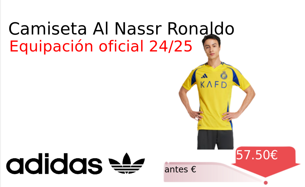 Buen Precio✨ Camiseta Al Nassr Ronaldo❗️🆕 #Adidas 📛Precio Ya 57.50€❗️ (PVP: +€) ✨Viste como las estrellas del Al Nassr FC con esta camiseta oficial Su tejido AEROREADY te mantiene seco y cómodo durante el partido. cholloya.com/ADIDAS_AL_NASR_
