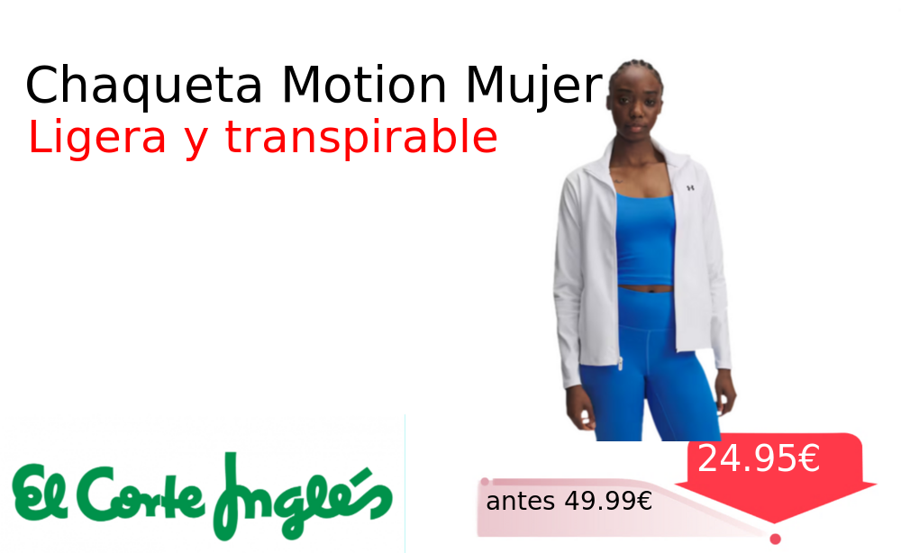 Mitad de precio✂️ Chaqueta Motion Mujer❗️🆕 #Elcorteingles 📛Precio Ya 24.95€❗️ (PVP: +49.99€) ✨Chaqueta ligera y transpirable para mujer ideal para el entrenamiento Ofrece comodidad y libertad de movimiento en cualquier actividad deportiva. cholloya.com/UNDER_ARMOUR_MO