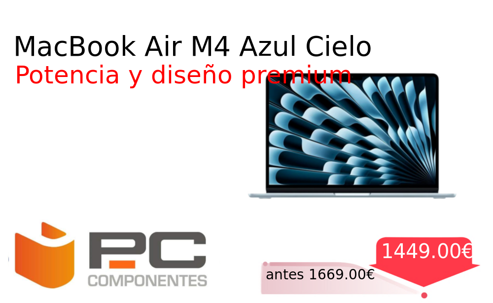 Buen Precio✨ MacBook Air M4 Azul Cielo❗️🆕 #PcComponentes 📛Precio Ya 1449.00€❗️ (PVP: +1669.00€) ✨Portátil ultradelgado con chip M4 de 10 núcleos 24 GB de memoria y almacenamiento SSD Pantalla de 13 6 pulgadas en un elegante acabado. cholloya.com/MACBOOK_AIR_M4