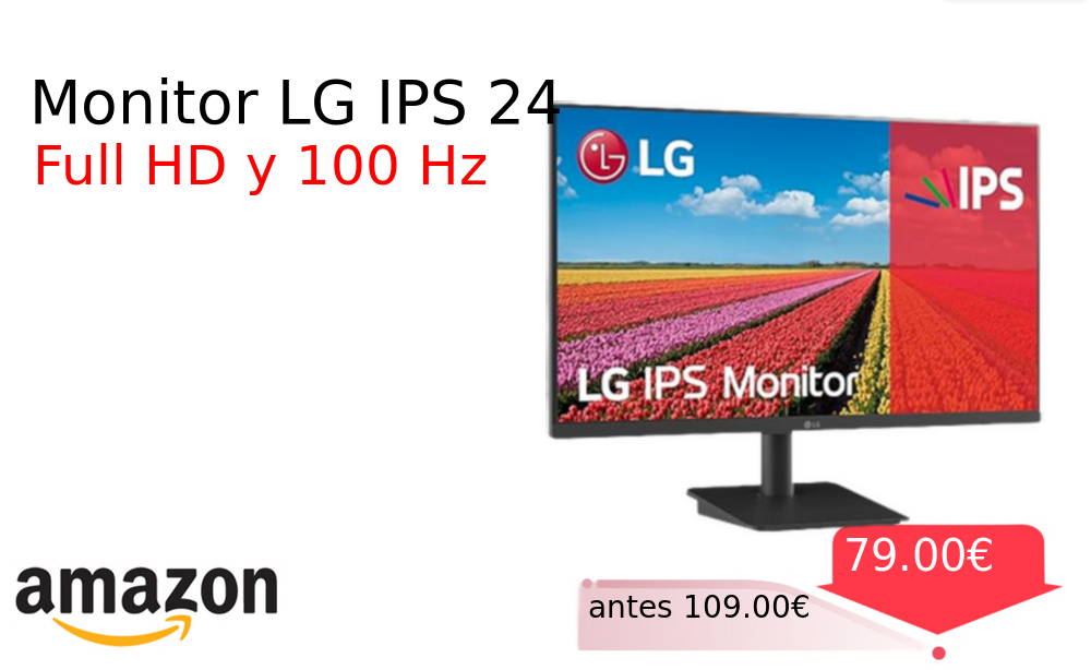 Buen Precio✨ Monitor LG IPS 24❗️🆕 #Amazon 🇪🇸 📛Precio Ya 79.00€❗️ (PVP: +109.00€) ✨Monitor IPS Full HD de 24 pulgadas con alta fluidez visual Tecnología Black Stabilizer y modos de lectura segura para un confort prolongado. cholloya.com/LG_24MS500_B