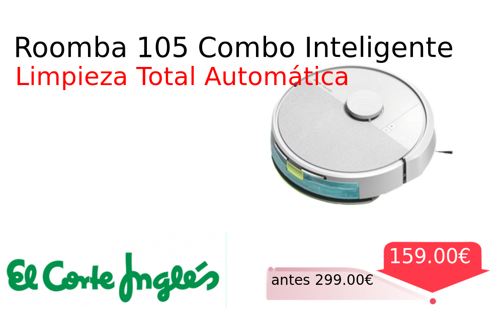 40% 📉 Vaya descuentazo‼‼ Roomba 105 Combo Inteligente❗️🆕 #Elcorteingles 📛Precio Ya 159.00€❗️ (PVP: +299.00€) ✨Este robot aspirador limpia y friega tus suelos automáticamente con tecnología LiDAR avanzada para navegación precisa en el hogar con multiples programas automaticos. cholloya.com/ROOMBA_105_COMB