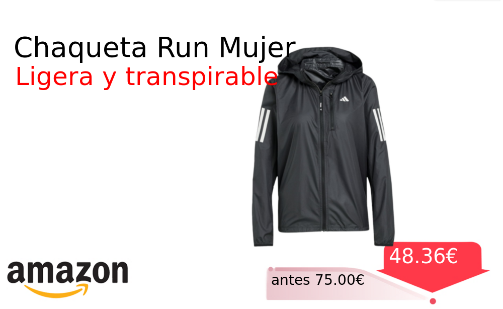 Más de un 30% 🚀 Chaqueta Run Mujer❗️🆕 #Amazon 🇪🇸 📛Precio Ya 48.36€❗️ (PVP: +75.00€) ✨Chaqueta técnica adidas para running femenino Diseño ligero y transpirable ideal para entrenamientos Ofrece comodidad y libertad de movimiento en cada carrera. cholloya.com/ADIDAS_RUN_JACK