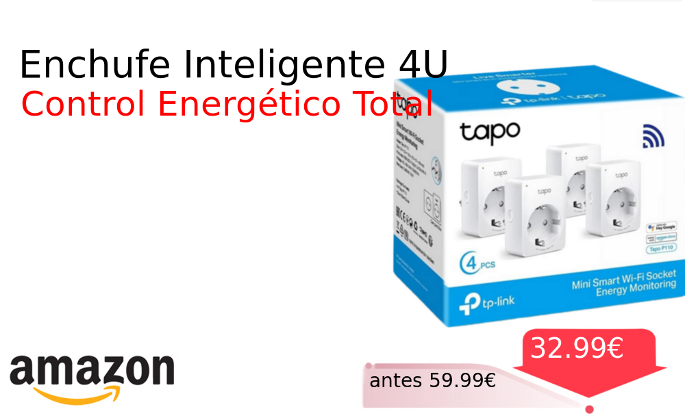 40% 📉 Vaya descuentazo‼‼ Enchufe Inteligente 4U❗️🆕 #Amazon 🇪🇸 📛Precio Ya 32.99€❗️ (PVP: +59.99€) ✨Enchufe inteligente Wi-Fi con monitoreo de consumo energético Programa encendido y apagado automático compatible con Alexa y Google Home para control total. cholloya.com/TAPO_P110_4U