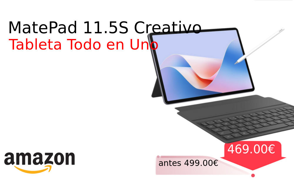 Buen Precio✨ MatePad 11.5S Creativo❗️🆕 #Amazon 🇪🇸 📛Precio Ya 469.00€❗️ (PVP: +499.00€) ✨Tableta premium con pantalla PaperMatte de 11 5 pulgadas y resolución 2 8K Incluye teclado y lápiz digital para notas y creatividad Rendimiento fluido. cholloya.com/HUAWEI_MATEPAD_