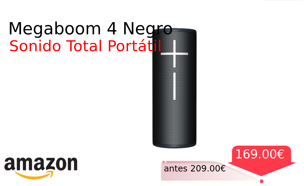Buen Precio✨ Megaboom 4 Negro❗️🆕 #Amazon 🇪🇸 📛Precio Ya 169.00€❗️ (PVP: +209.00€) ✨Altavoz Bluetooth portátil con sonido envolvente de 360 grados y graves potentes Impermeable flotante y veinte horas de autonomía para música sin límites. cholloya.com/UE_MEGABOOM_4