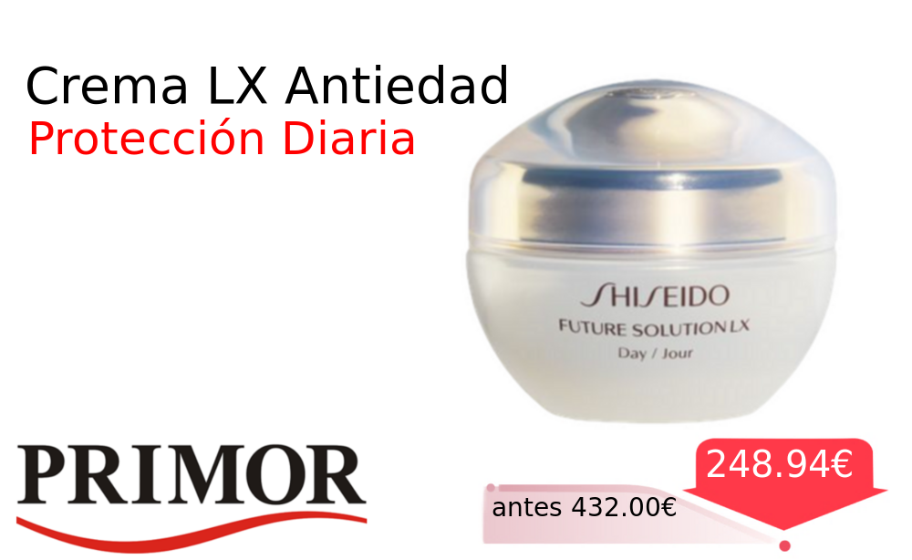 40% 📉 Vaya descuentazo‼‼ Crema LX Antiedad❗️🆕 #Primor 📛Precio Ya 248.94€❗️ (PVP: +432.00€) ✨Crema de día de lujo con protección solar SPF20 Textura rica que nutre intensamente la piel reduciendo visiblemente los signos de envejecimiento. cholloya.com/SHISEIDO_LX_CRE