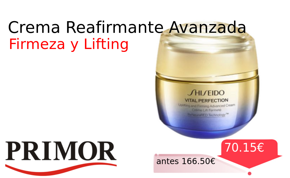Mitad de precio✂️ Crema Reafirmante Avanzada❗️🆕 #Primor 📛Precio Ya 70.15€❗️ (PVP: +166.50€) ✨Crema avanzada que reafirma y levanta la piel mejorando su firmeza y elasticidad para un aspecto rejuvenecido y radiante con uso continuado. cholloya.com/SHISEIDO_VITAL_