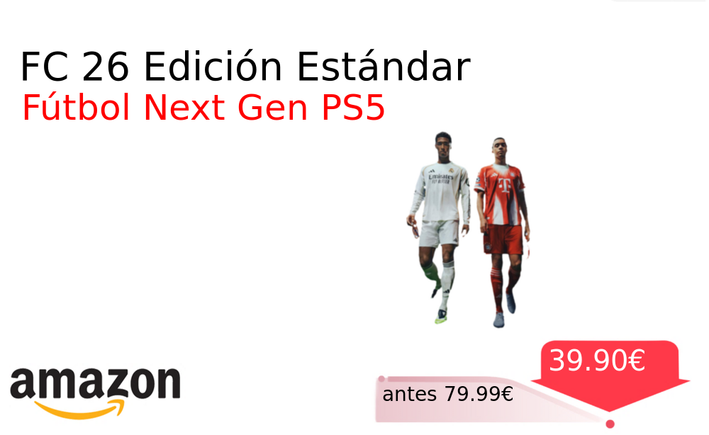 Mitad de precio✂️ FC 26 Edición Estándar❗️🆕 #Amazon 🇪🇸 📛Precio Ya 39.90€❗️ (PVP: +79.99€) ✨Vive la experiencia futbolística definitiva en PlayStation 5 con gráficos mejorados y jugabilidad realista que te sumergen en el deporte rey. cholloya.com/EA_FC26_PS5