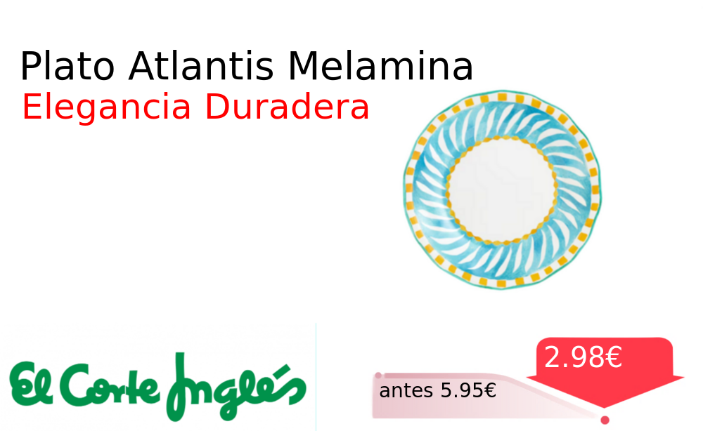 40% 📉 Vaya descuentazo‼‼ Plato Atlantis Melamina❗️🆕 #Elcorteingles 📛Precio Ya 2.98€❗️ (PVP: +5.95€) ✨Plato llano de melamina con diseño elegante y duradero Ideal para uso diario resistente y fácil de limpiar Perfecto para tu mesa. cholloya.com/ATLANTIS_PLATO