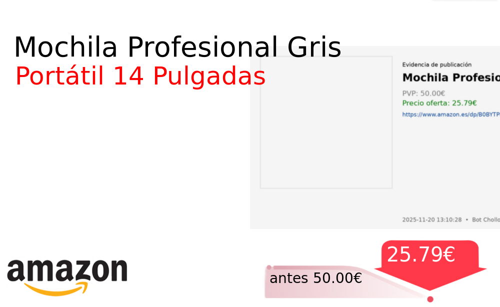40% 📉 Vaya descuentazo‼‼ Mochila Profesional Gris❗️🆕 #Amazon 🇪🇸 📛Precio Ya 25.79€❗️ (PVP: +50.00€) ✨Mochila resistente para portátil de 14 pulgadas con diseño moderno en gris melange Espacioso compartimento principal y organización inteligente para uso diario profesional. cholloya.com/MOCHILA_LAPTOP_