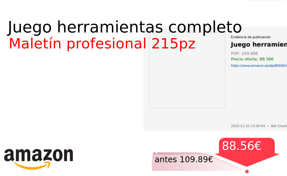 Buen Precio✨ Juego herramientas completo❗️🆕 #Amazon 🇪🇸 📛Precio Ya 88.56€❗️ (PVP: +109.89€) ✨Maletín profesional con 215 piezas de herramientas incluye llaves de vaso y accesorios Color verde dimensiones compactas para máximo rendimiento en trabajos técnicos. cholloya.com/M98430_HERRAMIE