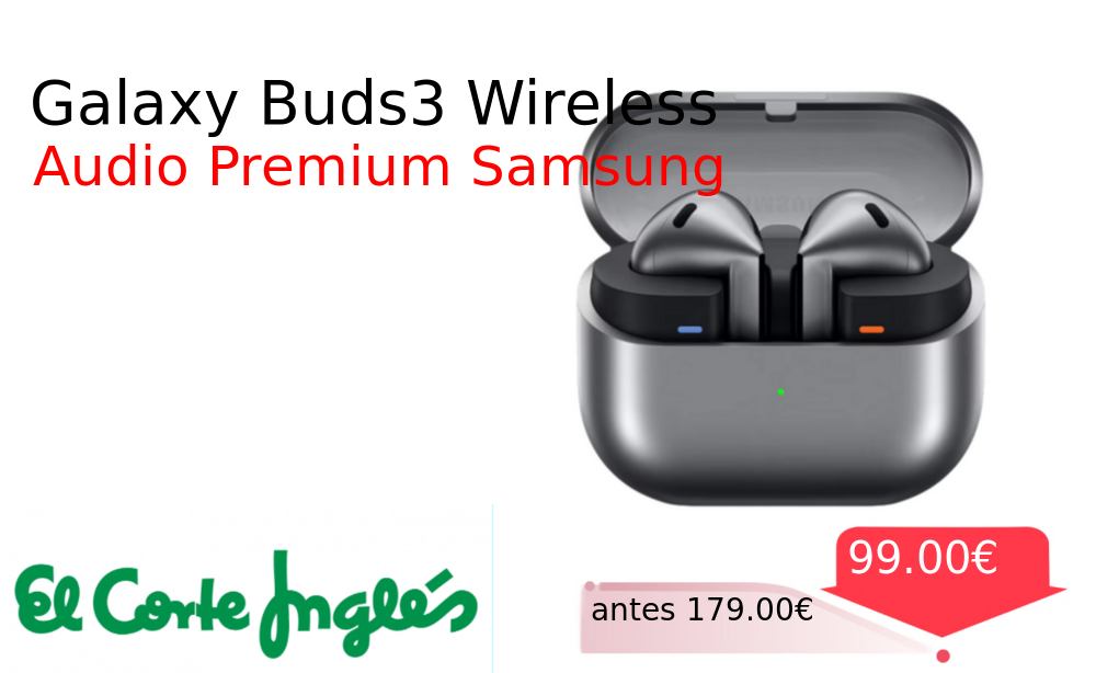 40% 📉 Vaya descuentazo‼‼ Galaxy Buds3 Wireless❗️🆕 #Elcorteingles 📛Precio Ya 99.00€❗️ (PVP: +179.00€) ✨Auriculares inalámbricos con sonido envolvente y diseño ergonómico Cancelación activa de ruido para máxima inmersión Carga rápida y resistencia al agua. cholloya.com/SAMSUNG_BUDS3