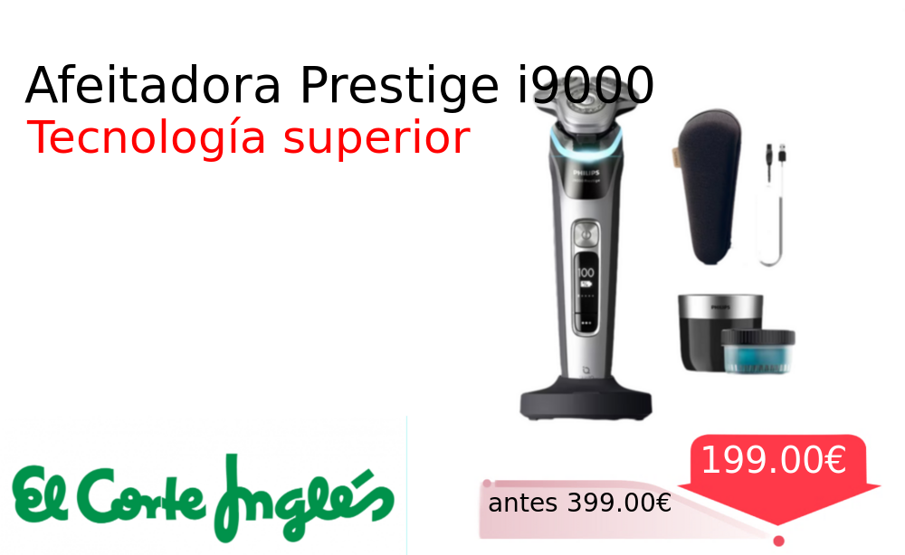 Mitad de precio✂️ Afeitadora Prestige i9000❗️🆕 #Elcorteingles 📛Precio Ya 199.00€❗️ (PVP: +399.00€) ✨Afeitadora eléctrica Philips para hombre con tecnología avanzada funciona en seco y mojado Incluye base de carga elegante para máxima comodidad diaria. cholloya.com/PHILIPS_I9000