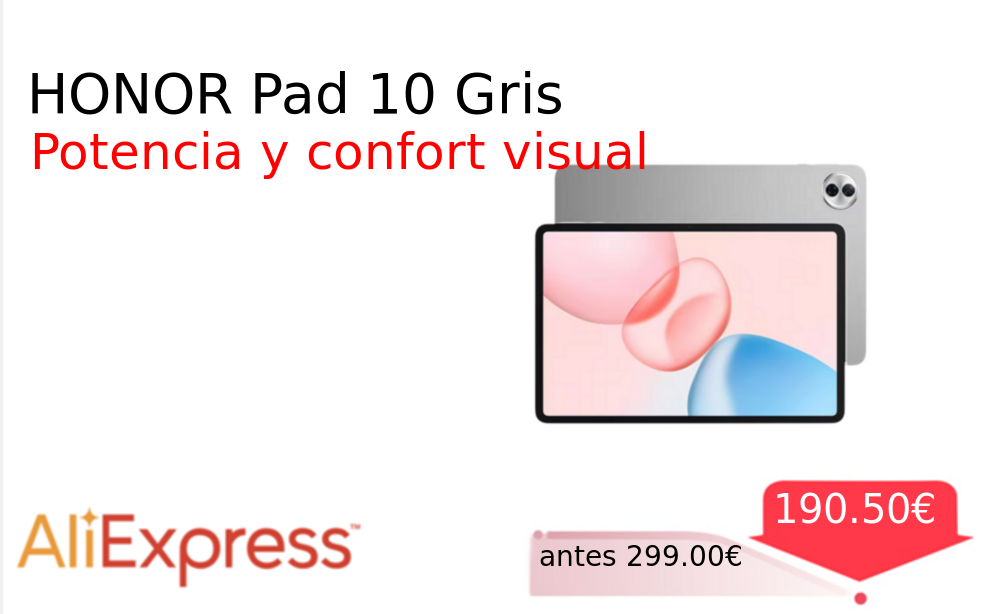 Más de un 30% 🚀 HONOR Pad 10 Gris❗️🆕 #AliExpress 📛Precio Ya 190.50€❗️ (PVP: +299.00€) ✨Tableta con pantalla 2 5K Eye Comfort chipset Snapdragon 7 Gen 3 y batería de larga duración Memoria 8GB 256GB en color gris. cholloya.com/HONOR_PAD_10