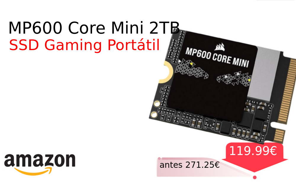 Mitad de precio✂️ MP600 Core Mini 2TB❗️🆕 #Amazon 🇪🇸 📛Precio Ya 119.99€❗️ (PVP: +271.25€) ✨SSD NVMe PCIe Gen4 de 2TB con formato M 2 2230 Velocidades de lectura secuencial hasta 5000 MB s Tecnología QLC NAND de alta. cholloya.com/MP600_MINI_2TB