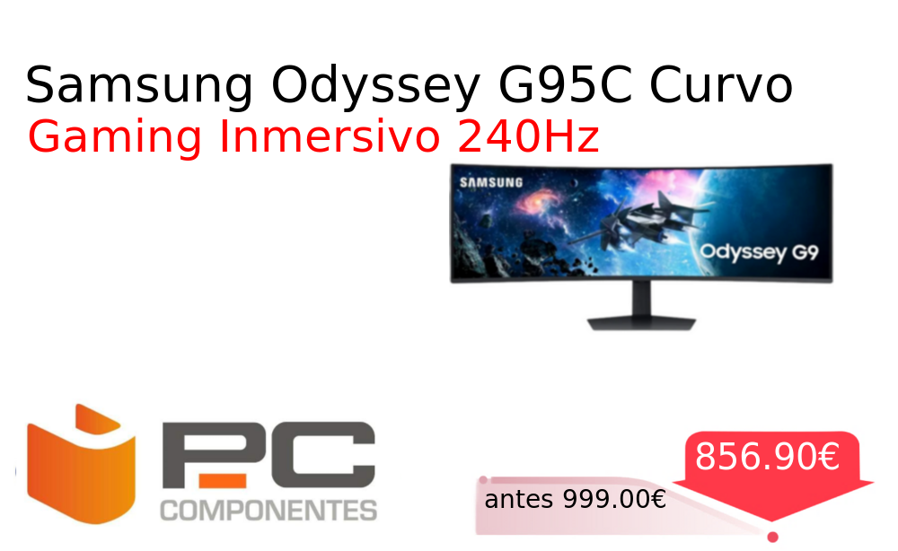 Buen Precio✨ Samsung Odyssey G95C Curvo❗️🆕 #PcComponentes 📛Precio Ya 856.90€❗️ (PVP: +999.00€) ✨Monitor curvo ultrapanorámico de 49 pulgadas con tasa de refresco de 240 Hz Tecnología FreeSync Premium Pro para una experiencia de juego fluida. cholloya.com/SAMSUNG_ODYSSEY