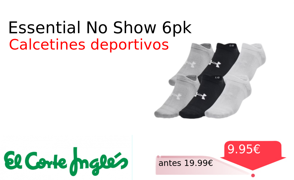 Mitad de precio✂️ Essential No Show 6pk❗️🆕 #Elcorteingles 📛Precio Ya 9.95€❗️ (PVP: +19.99€) ✨Calcetines deportivos esenciales de Under Armour ideales para el día a día y el entrenamiento Su diseño no show ofrece comodidad discreta y transpirabilidad. cholloya.com/UA_ESSENTIAL_NO