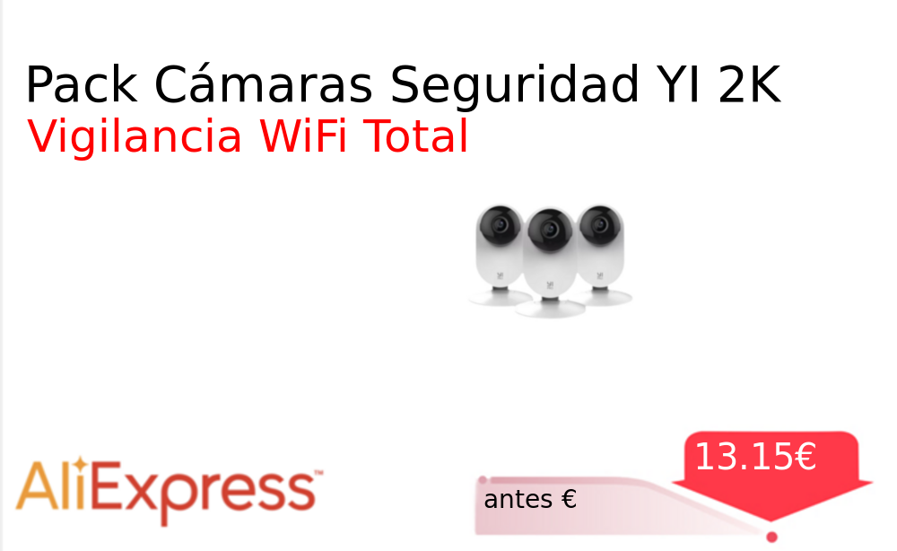 Buen Precio✨ Pack Cámaras Seguridad YI 2K❗️🆕 #AliExpress 📛Precio Ya 13.15€❗️ (PVP: +€) ✨Sistema de seguridad IP con cámaras de 3MP y visión nocturna Vigila tu hogar oficina o mascotas en tiempo real mediante conexión WiFi. cholloya.com/YI_2K_CAM_PACK