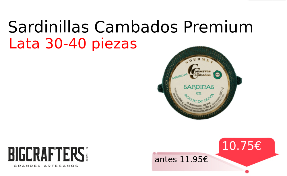 Buen Precio✨ Sardinillas Cambados Premium❗️🆕 #BigCrafters 📛Precio Ya 10.75€❗️ (PVP: +11.95€) ✨Sardinillas selectas en aceite de oliva capturadas y enlatadas artesanalmente en Cambados Sabor intenso y auténtico de la ría gallega en cada bocado. cholloya.com/BIGCRAFTERS_SAR