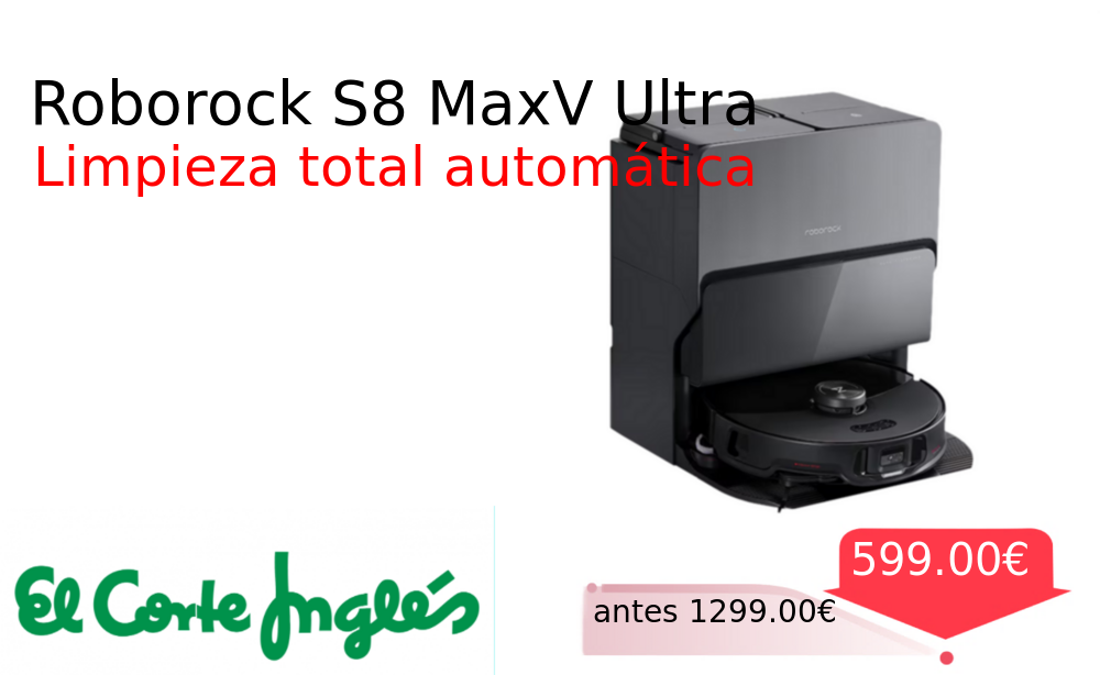 Mitad de precio✂️ Roborock S8 MaxV Ultra❗️🆕 #Elcorteingles 📛Precio Ya 599.00€❗️ (PVP: +1299.00€) ✨Robot aspirador y friegasuelos con base multifuncional que lava y seca sus paños Limpia bordes a fondo y gestiona la suciedad de forma autónoma. cholloya.com/ROBOROCK_S8_MAX