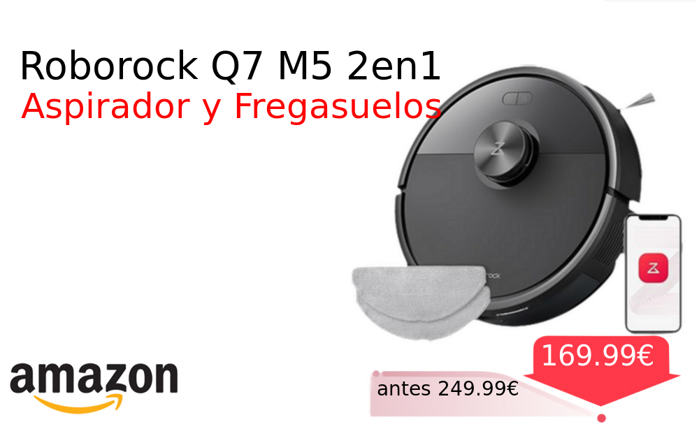 Más de un 30% 🚀 Roborock Q7 M5 2en1❗️🆕 #Amazon 🇪🇸 📛Precio Ya 169.99€❗️ (PVP: +249.99€) ✨Robot aspirador y fregasuelos 2 en 1 con potente succión y navegación LiDAR precisa Control total desde la app y con comandos de voz. cholloya.com/ROBOROCK_Q7_M5