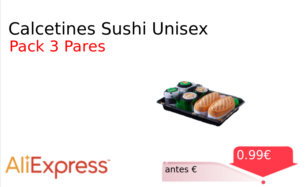 Buen Precio✨ Calcetines Sushi Unisex❗️🆕 #AliExpress 📛Precio Ya 0.99€❗️ (PVP: +€) ✨Tres pares de calcetines de tubo medio con divertidos estampados de sushi Unisex cómodos y transpirables Regalo original para cualquier ocasión especial. cholloya.com/CALCETINES_SUSH