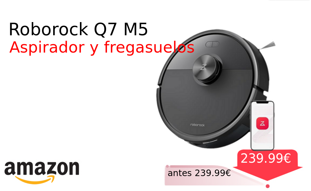 Buen Precio✨ Roborock Q7 M5❗️🆕 #Amazon 🇪🇸 📛Precio Ya 239.99€❗️ (PVP: +239.99€) ✨Robot aspirador y fregasuelos 2 en 1 con potente succión de 10000 Pa Sistema antienredos y navegación LiDAR precisa Se controla fácilmente por app. cholloya.com/ROBOROCK_Q7_M5