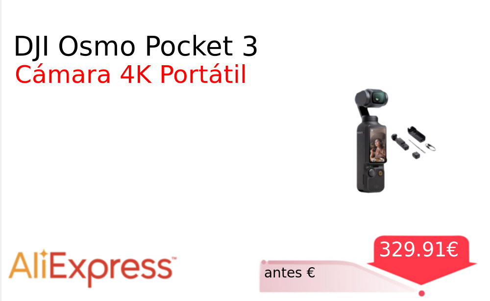 Buen Precio✨ DJI Osmo Pocket 3❗️🆕 #AliExpress 📛Precio Ya 329.91€❗️ (PVP: +€) ✨Cámara compacta con sensor de una pulgada Graba vídeo 4K a 120 fps y cuenta con una pantalla táctil giratoria de dos pulgadas Ideal. cholloya.com/OSMO_POCKET_3
