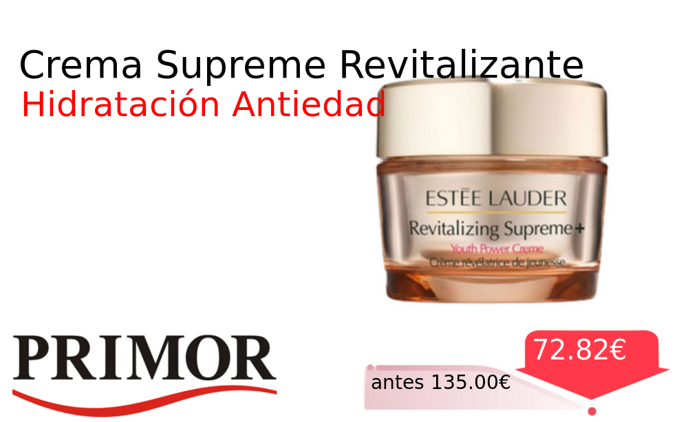 40% 📉 Vaya descuentazo‼‼ Crema Supreme Revitalizante❗️🆕 #Primor 📛Precio Ya 72.82€❗️ (PVP: +135.00€) ✨Crema antiedad de Estée Lauder que hidrata intensamente y revitaliza la piel aportando firmeza y un aspecto más joven y radiante. cholloya.com/ESTEELAUDER_SUP