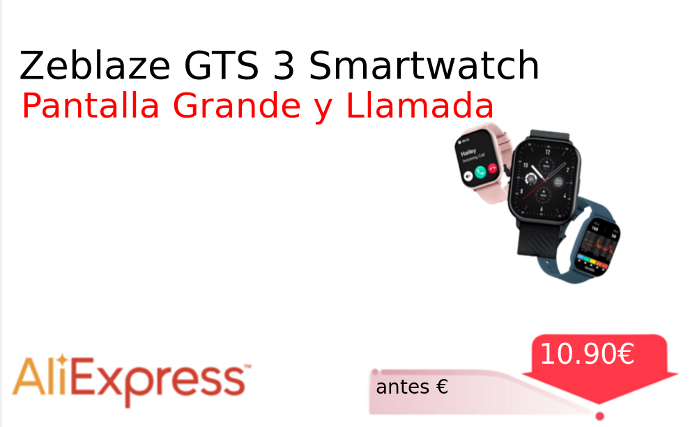 Buen Precio✨ Zeblaze GTS 3 Smartwatch❗️🆕 #AliExpress 📛Precio Ya 10.90€❗️ (PVP: +€) ✨Reloj inteligente con pantalla ultragrande HD y llamadas de voz Monitoriza tu salud constantemente y ofrece más de cien modos deportivos personalizables. cholloya.com/ZEBLAZE_GTS_3