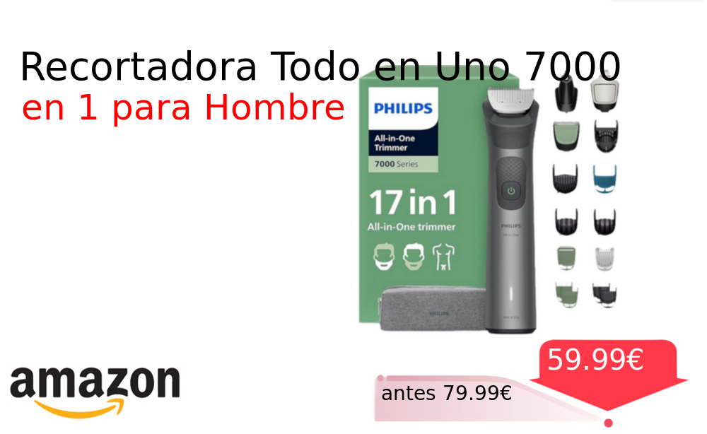Buen Precio✨ Recortadora Todo en Uno 7000❗️🆕 #Amazon 🇪🇸 📛Precio Ya 59.99€❗️ (PVP: +79.99€) ✨Recortadora versátil con 17 accesorios para un cuidado completo Cuchillas autoafilables de acero y 26 longitudes para rostro cabeza y cuerpo Diseño ergonómico. cholloya.com/PHILIPS_MG7961_