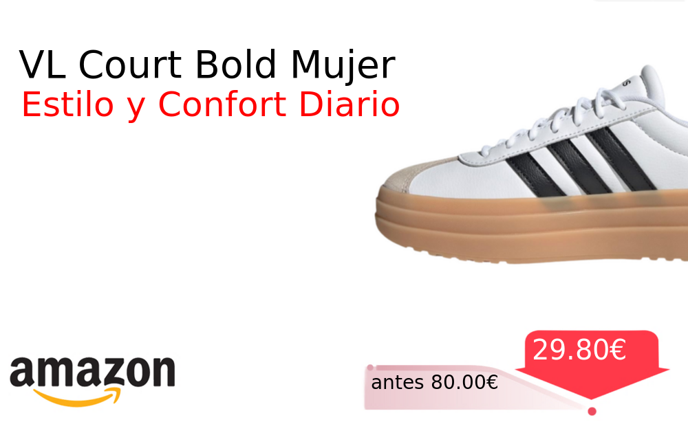 Mitad de precio✂️ VL Court Bold Mujer❗️🆕 #Amazon 🇪🇸 📛Precio Ya 29.80€❗️ (PVP: +80.00€) ✨Zapatillas adidas para mujer con diseño clásico y versátil Ofrecen comodidad duradera y un estilo atemporal para el día a día combinando funcionalidad. cholloya.com/ADIDAS_VL_COURT